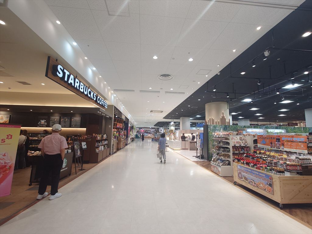 北海道美味いもの店、スタバ、フードコート。奥を見ると、先が見えないくらいに遠い。この店は、それほど広いのだ。