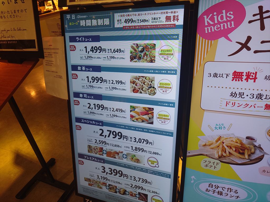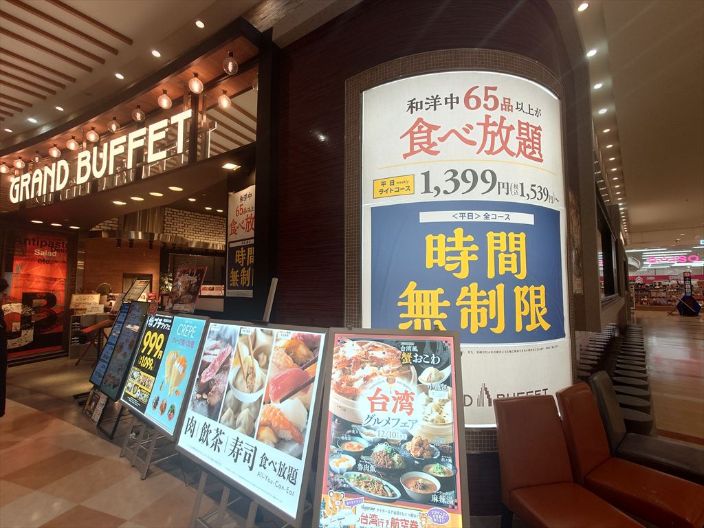 「GRAND BUFFET」というお店であり、制限時間内であれば食べ放題ビュッフェとなっている。平日、安くね?