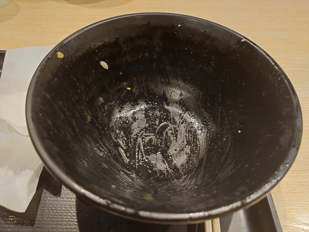 油ギトギト感はいつも通りで、上にフライドガーリックが散りばめられている。