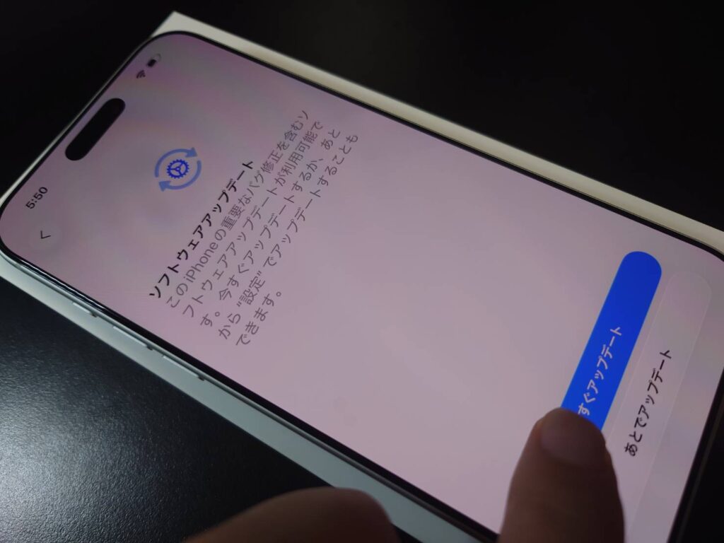 Wi-Fiの設定をしたところで、アップデートが求められる。