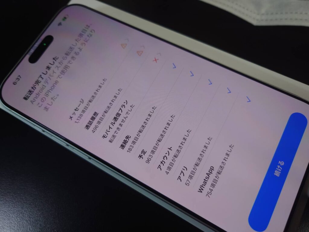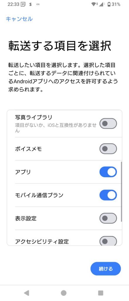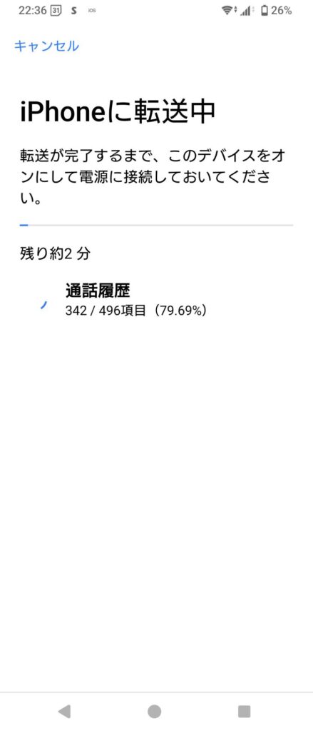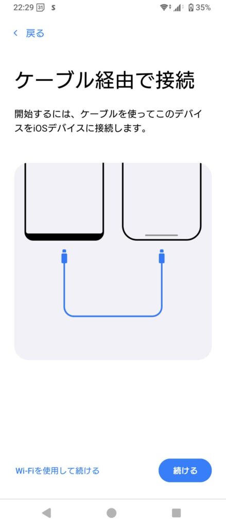 データ移行したいAndroid端末と、移行先のiphoneを相互に接続して転送できるというのだ。