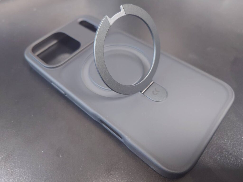 裏のリングはもちろん手前に引けて、片手持ちの落下防止となる。