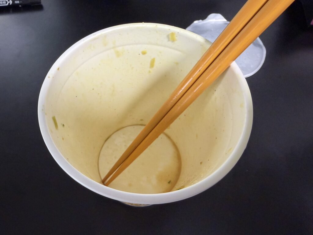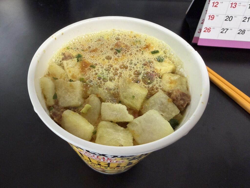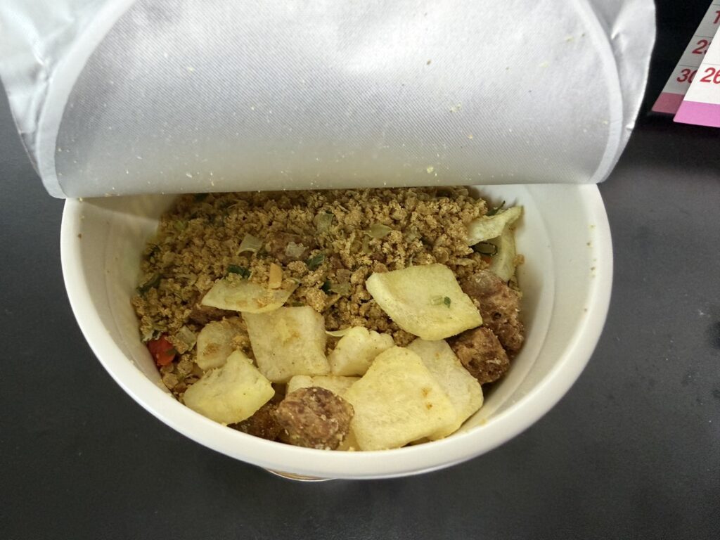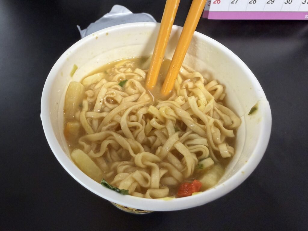 沸かしたお湯を入れると、マヨネーズの香りがただよった。しかし、カレーの香りが弱い気がする。