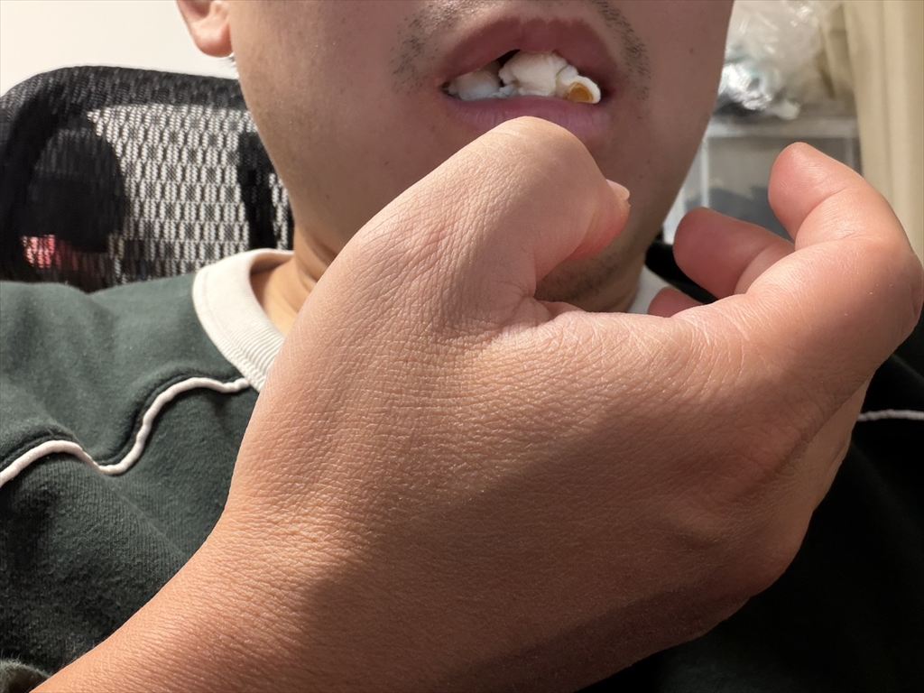 香りの方だが、とくにポテトチップの香りはせず、ただのポップコーンの香りしかしない。ポップコーン独特のコーンの香りがする。