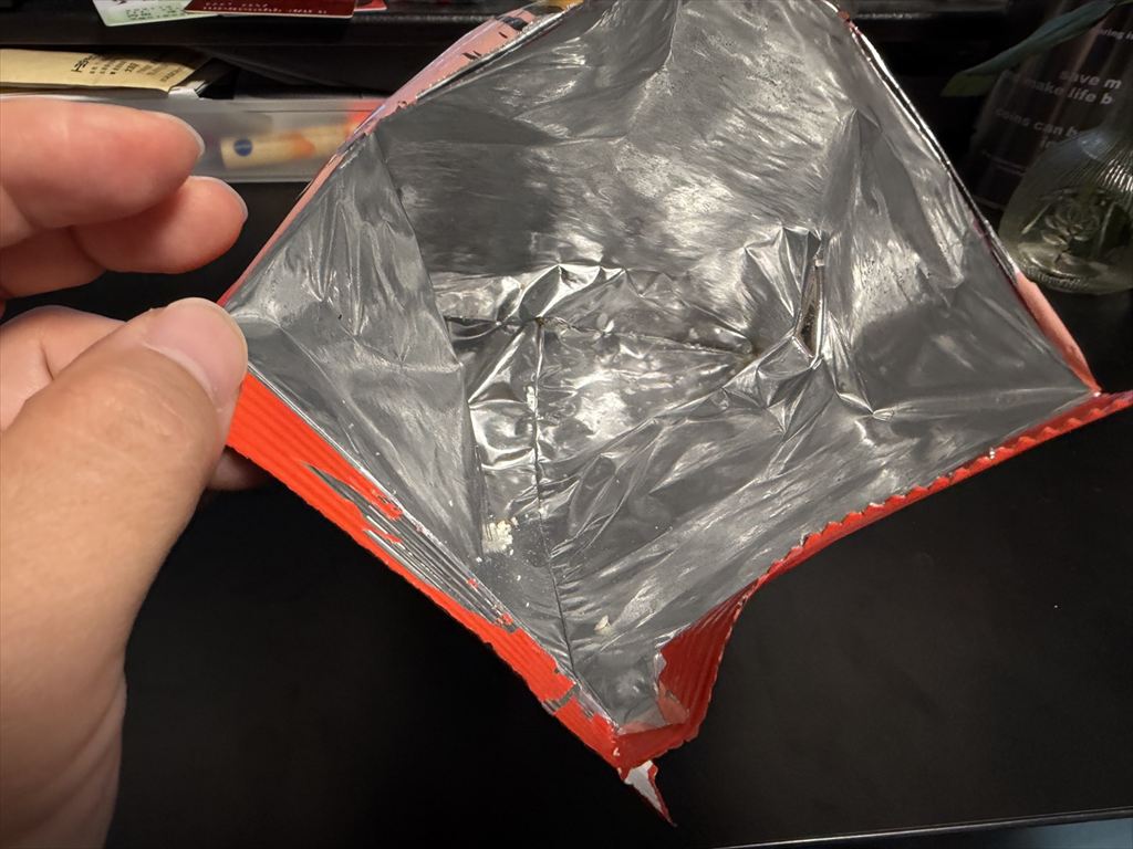 うん、”ただの塩味”である。正直、ポテトチップスの味は皆無(私の味覚が変なのか?)