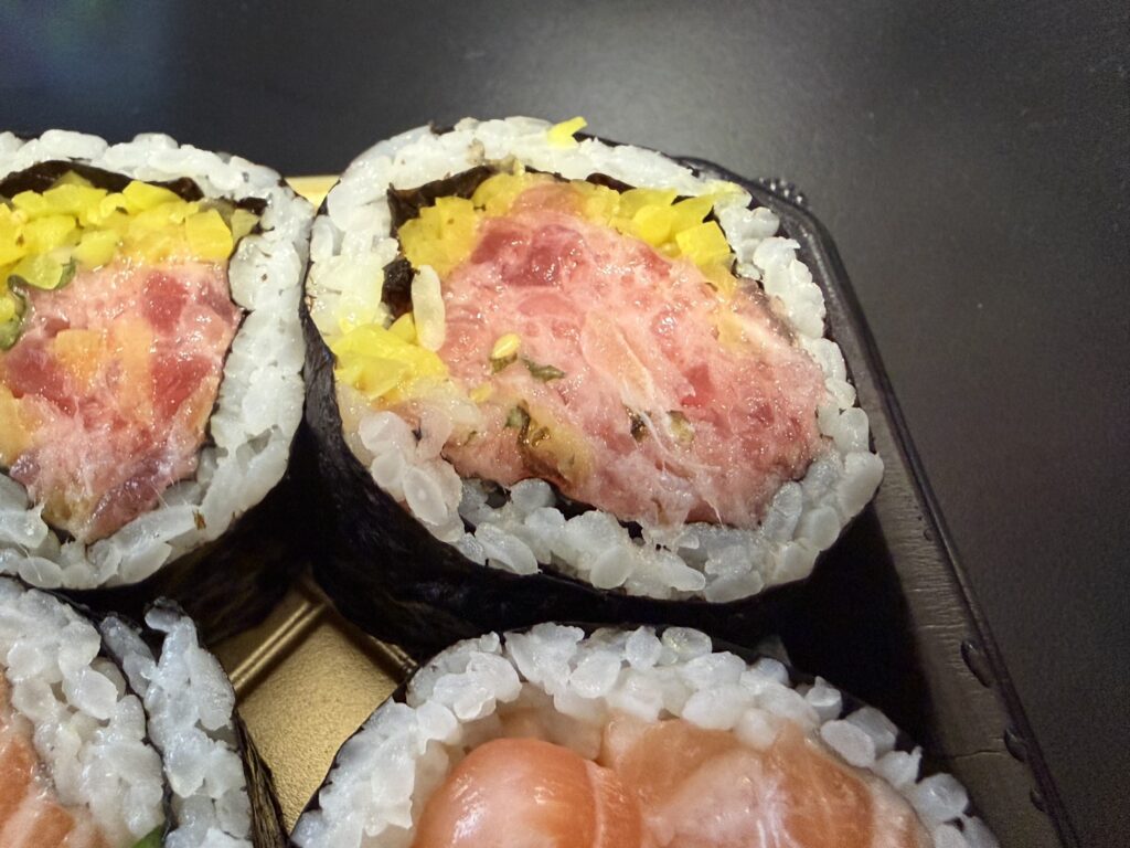 とろたくの方は、とろに刻まれたたくあんが入っており、こちらも非常に美味しそう。何よりも彩り素敵である。