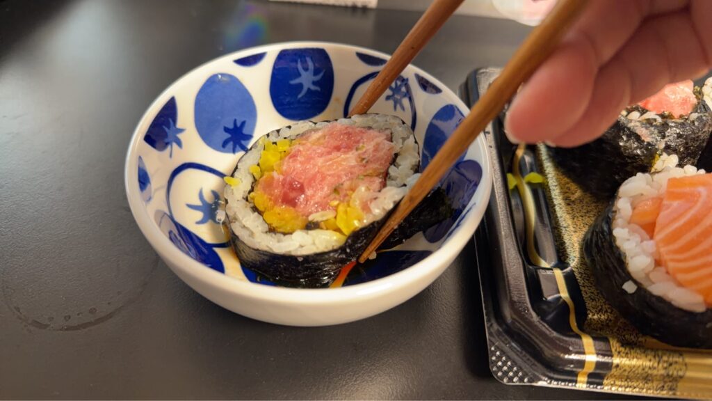 ”優勝”だ。正直これまで巻き寿司を食べてもパッとこなかった。しかしこれは圧倒的なトロの量。そのうえに、切り刻まれたたくあん。噛んだ瞬間にトロトロのトロが口に広がり、たくあんのパリっとした食感。トロの脂身をたくあんによってマイルドにしてくれる。いいハーモニーだ。とろたくってこんなに美味しかったの??と驚いてしまった。
