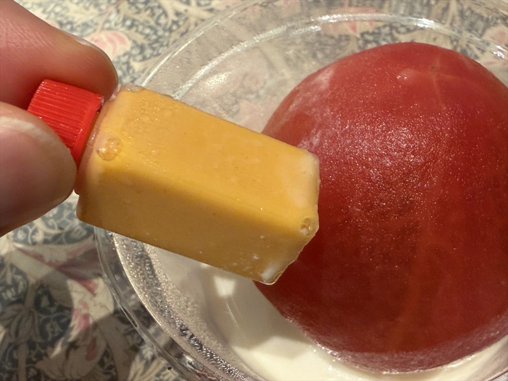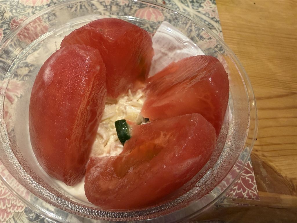 トマトはキンキンに冷やして食べるのが通だ。そのため、半日以上は冷蔵庫に寝かせている状態。