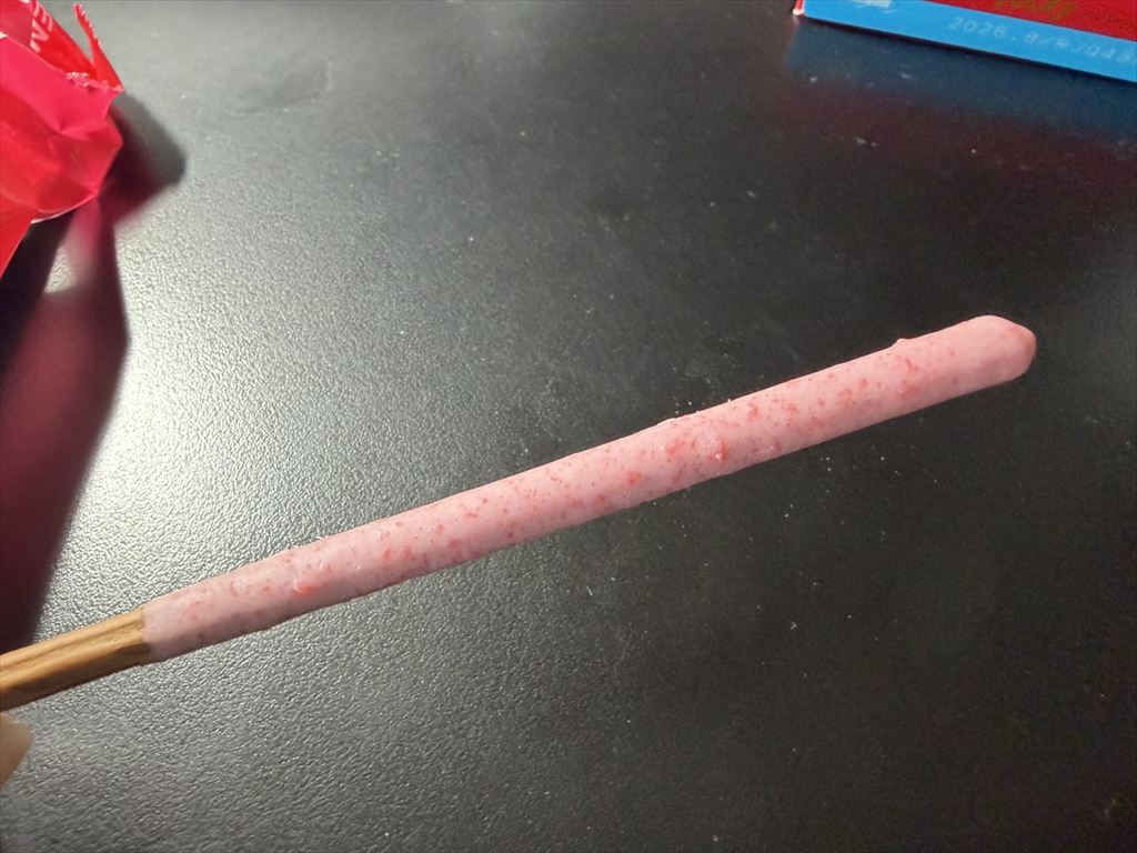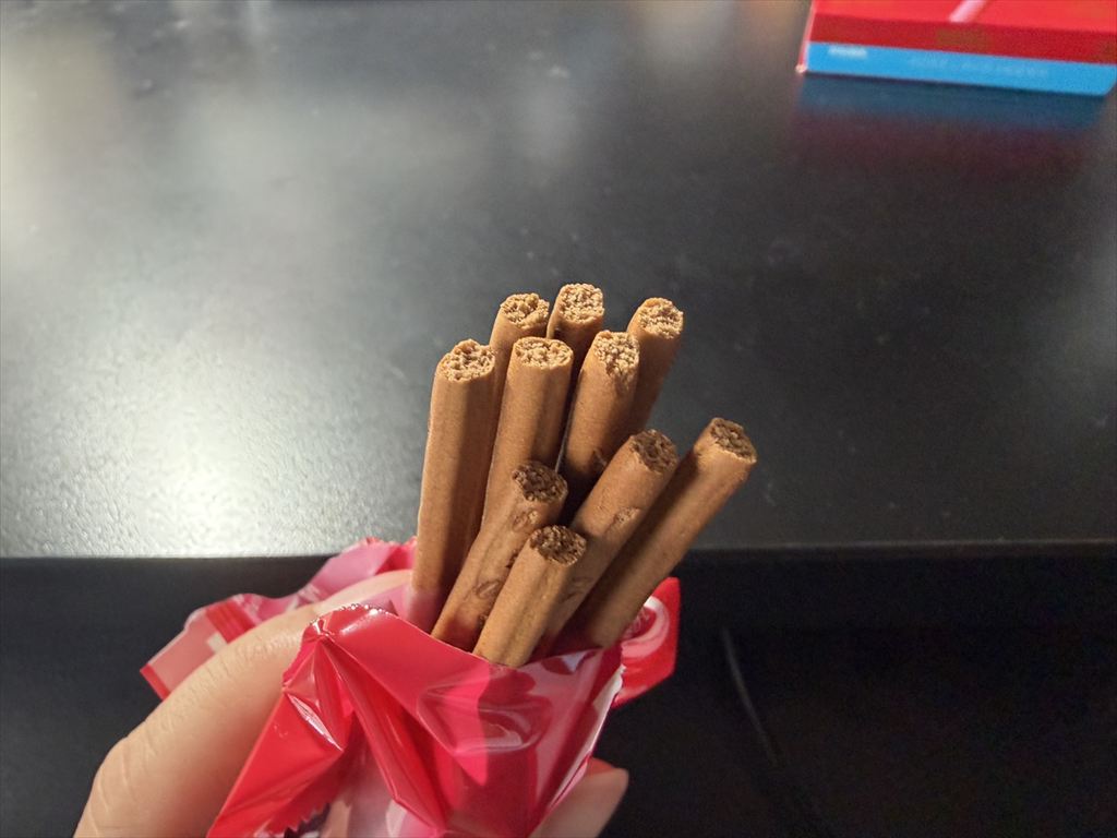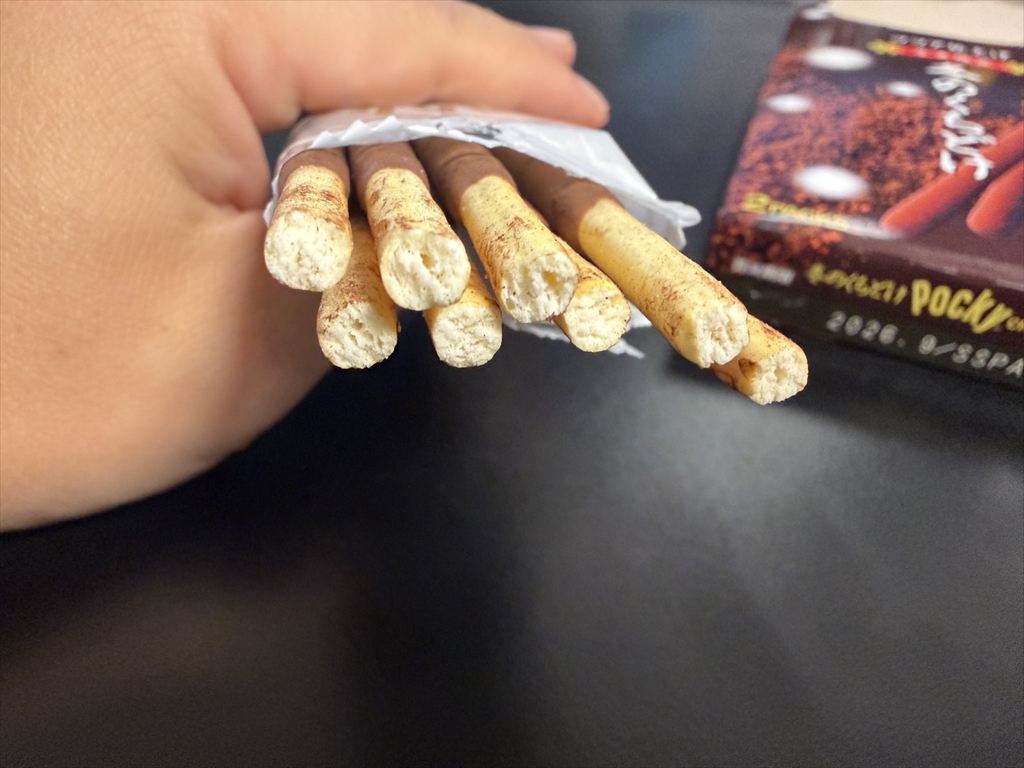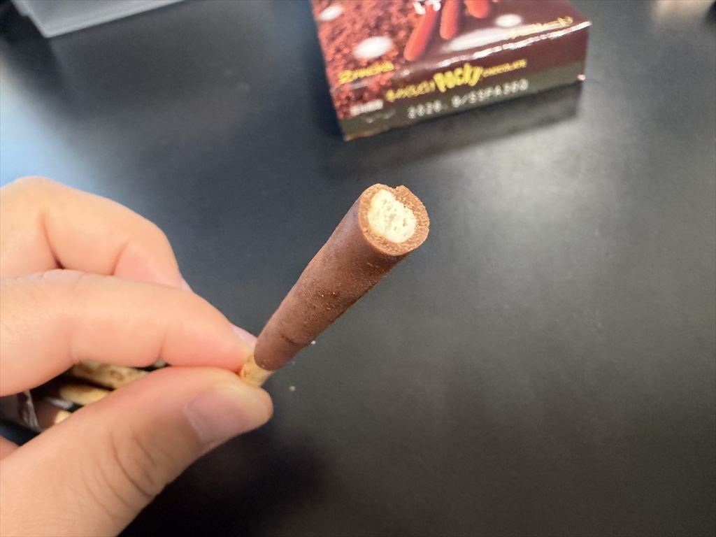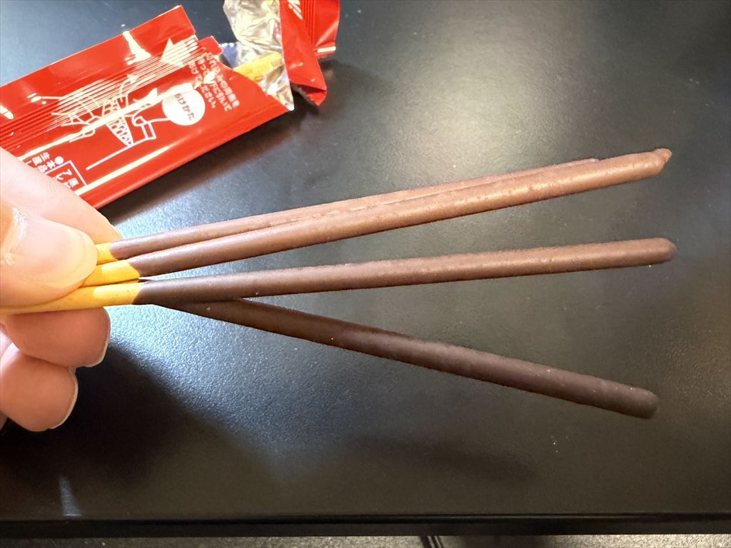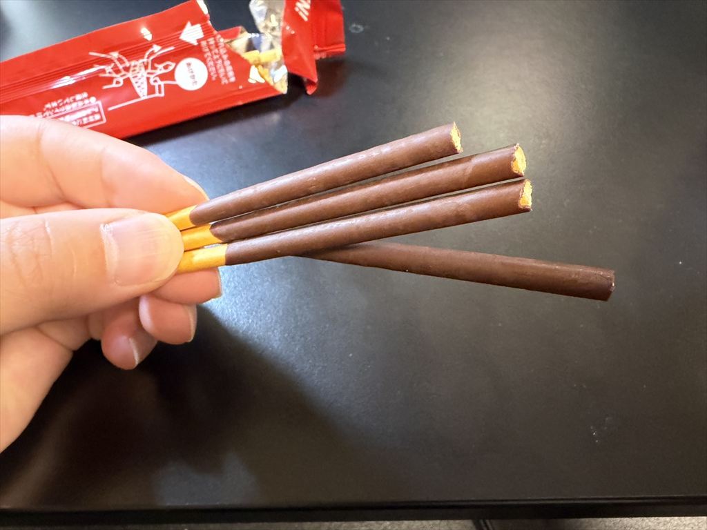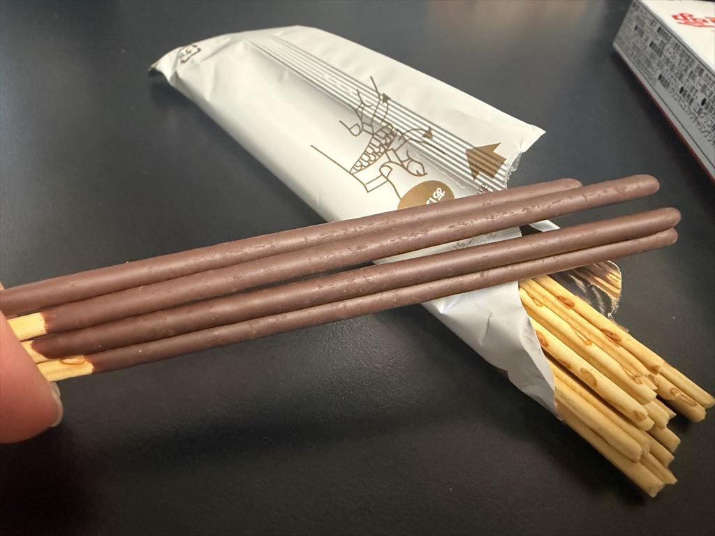 食べてみると、チョコの部分が一般的なポッキーよりも厚めにコーティングされている。