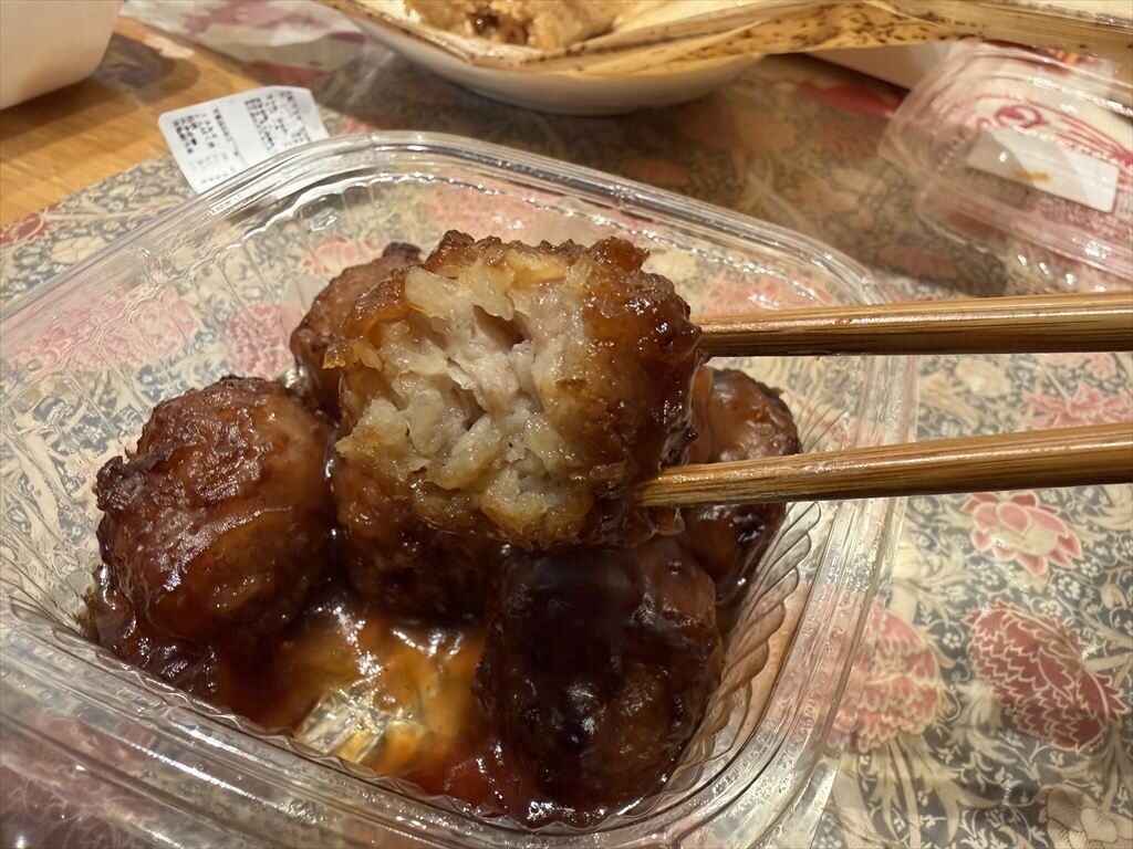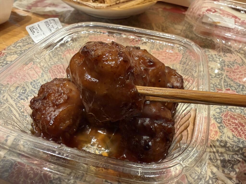 肉団子にはたっぷりのタレがかかっている。